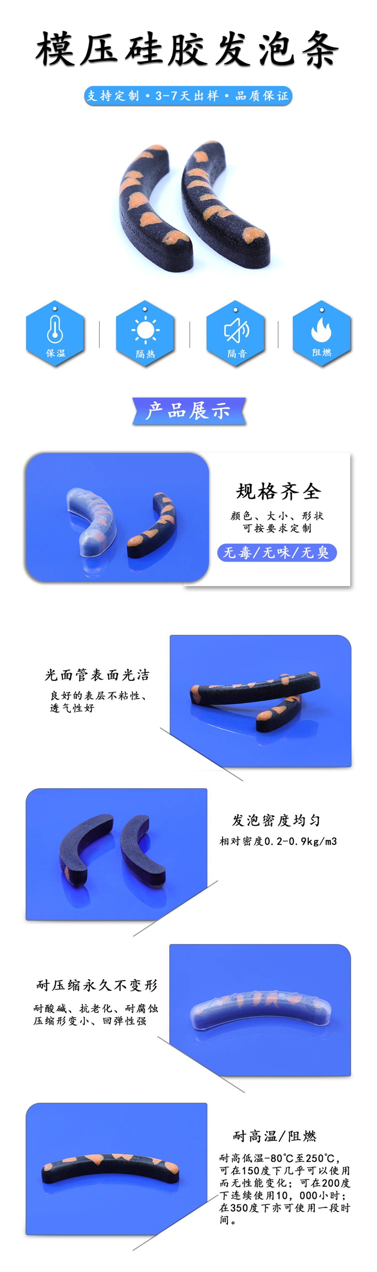 模壓硅膠發泡條性能: