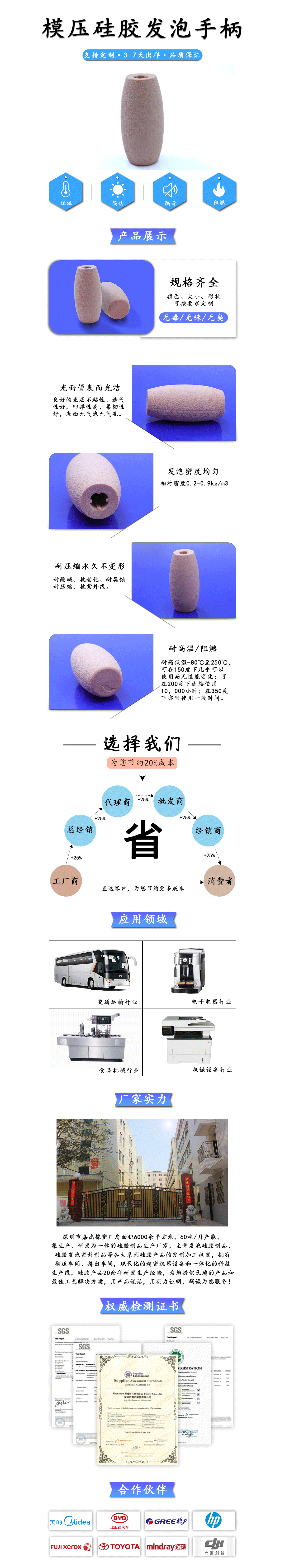 模壓硅膠發泡手柄: 采用優質硅膠原料制作,安全無毒無味、顏色、大小、形狀可按要求定制